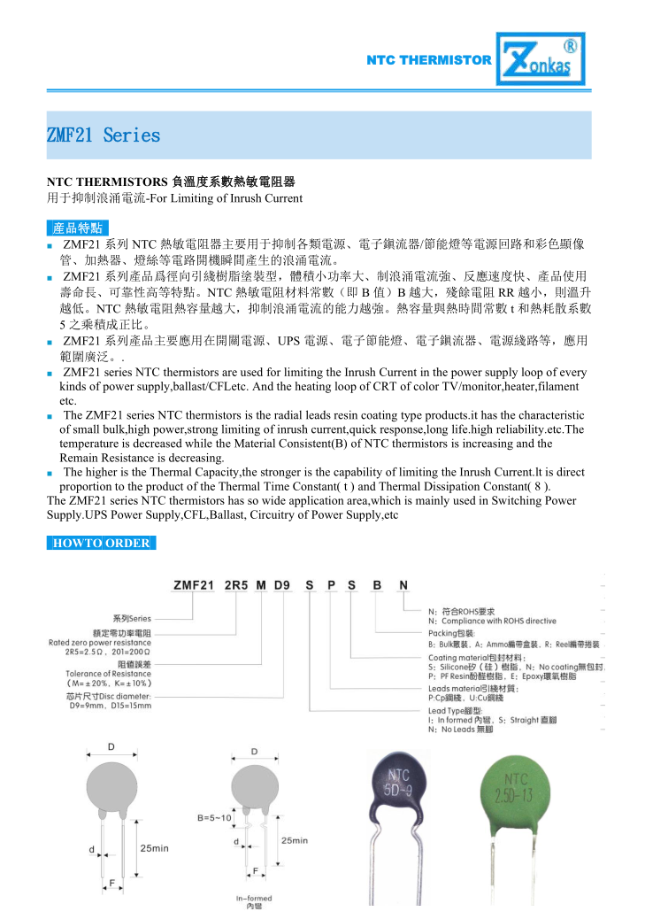 为了避免电子电路中在开机的瞬间产生的浪涌电流,在电源电路中串接一个功率型NTC热敏电阻,能有效地抑制开机时的浪涌电流,并且在完成抑制浪涌电流作用以后,由于通过其电流的持续作用,功率型NTC热敏电阻的电阻值将下降到非常小的程度,它消耗的功率可以忽略不计,不会对正常的工作电流造成影响,所以,在电源回路中使用功率型NTC热敏电阻,是抑制开机时的浪涌,以保证电子设备免遭破坏的最为简便而有效的措施。